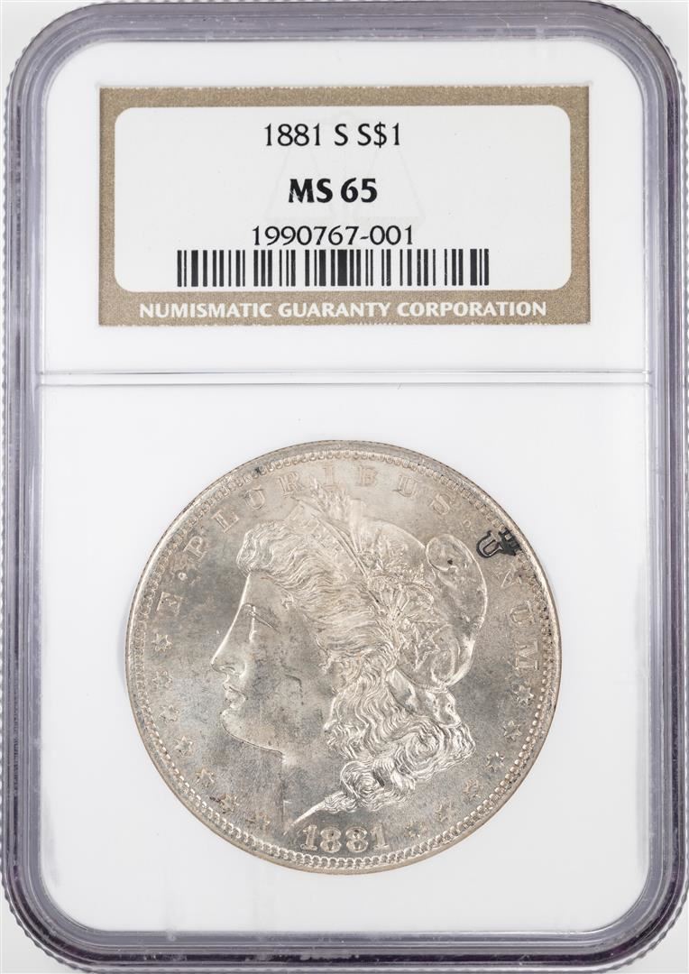 One 1881-S $1 Morgan Silver Dollar Coin NGC MS65. NGC Certified.