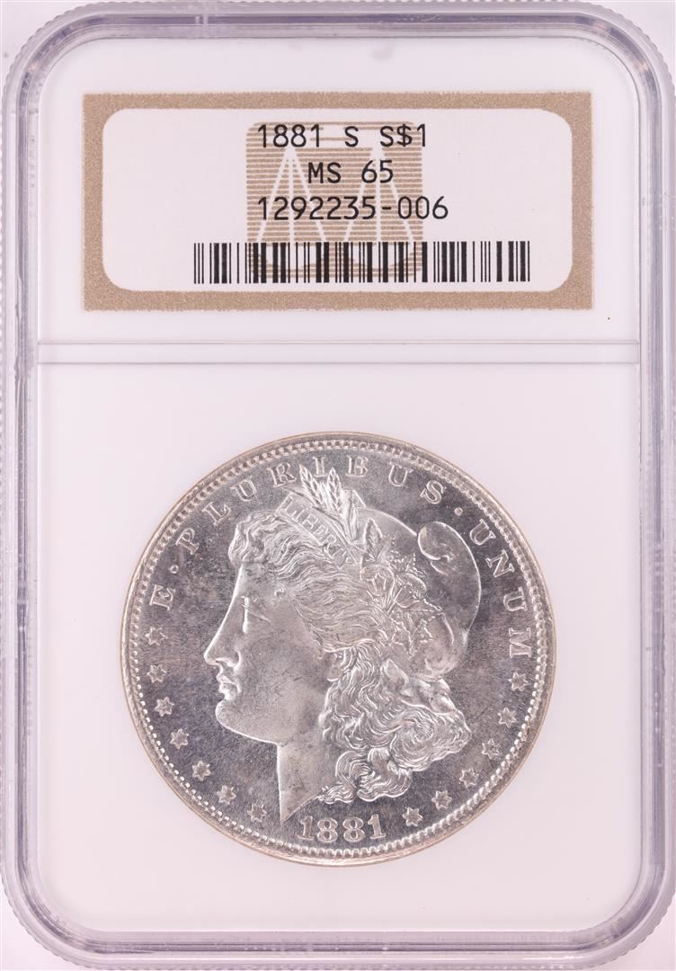 One 1881-S $1 Morgan Silver Dollar Coin NGC MS65. NGC Certified.