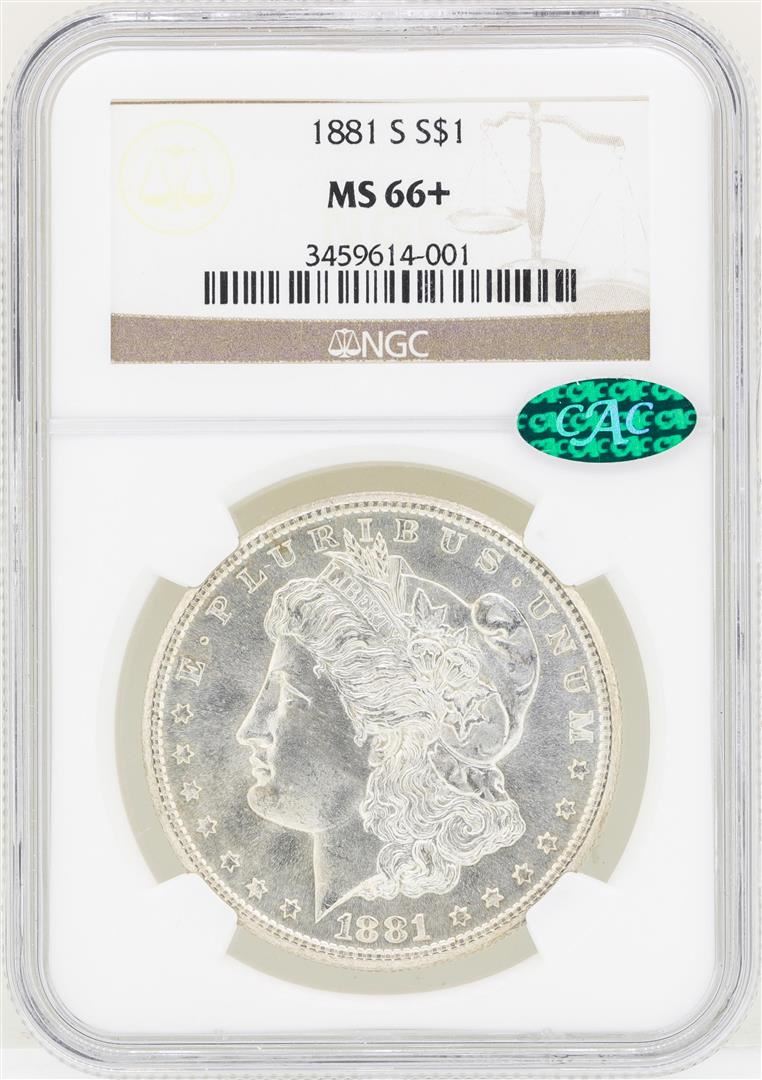 One 1881-S $1 Morgan Silver Dollar Coin NGC MS66+ CAC. NGC Certified.