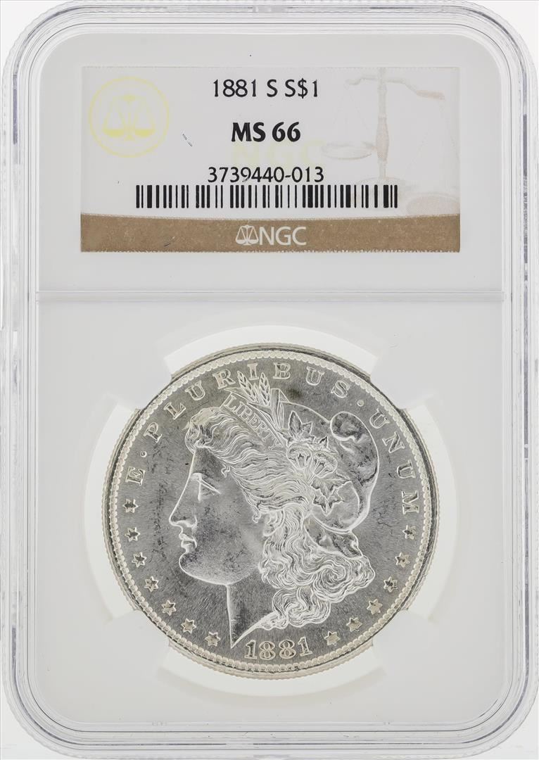One 1881-S $1 Morgan Silver Dollar Coin NGC MS66. NGC Certified.