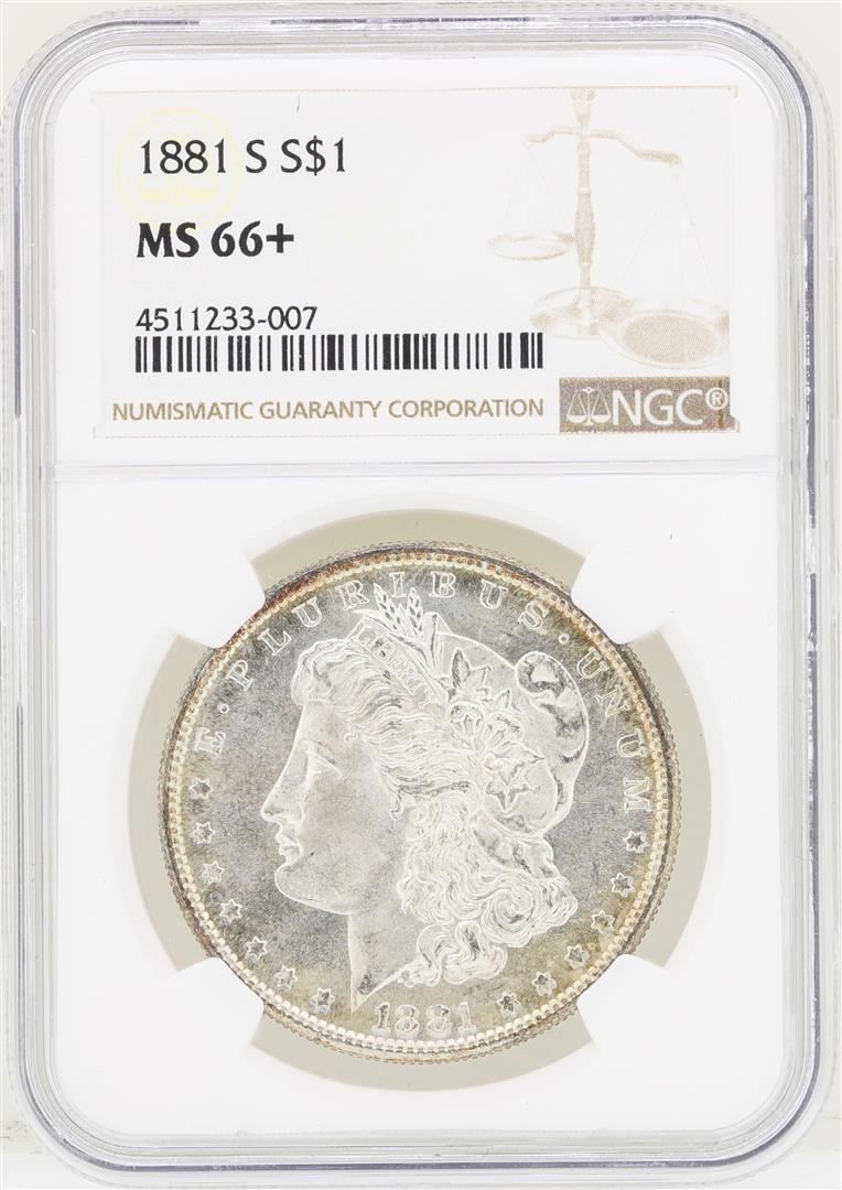 One 1881-S $1 Morgan Silver Dollar Coin NGC MS66+. NGC Certified.
