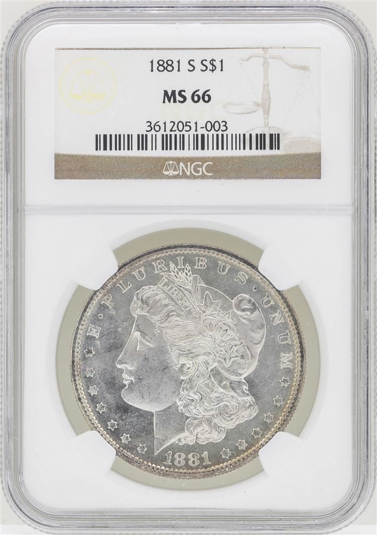 One 1881-S $1 Morgan Silver Dollar Coin NGC MS66. NGC Certified.
