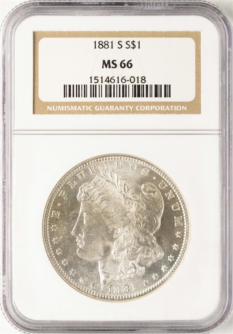 One 1881-S $1 Morgan Silver Dollar Coin NGC MS66. NGC Certified.