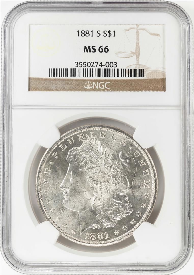 One 1881-S $1 Morgan Silver Dollar Coin NGC MS66. NGC Certified.