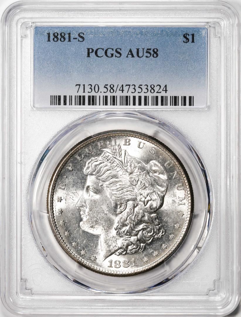 One 1881-S $1 Morgan Silver Dollar Coin PCGS AU58. PCGS Graded.