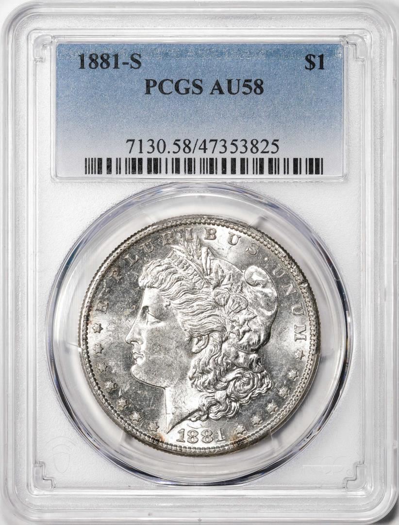 One 1881-S $1 Morgan Silver Dollar Coin PCGS AU58. PCGS Graded.