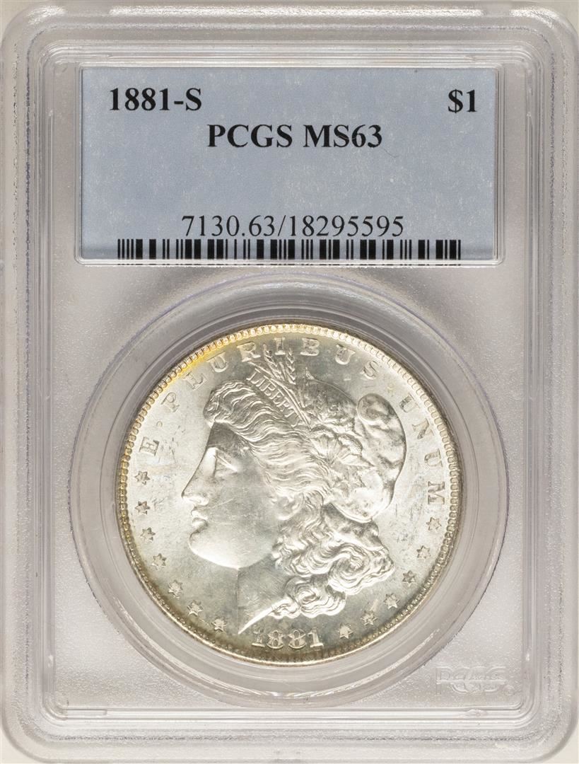 1881-S $1 Morgan Silver Dollar Coin PCGS MS63 Amazing Rainbow Toning