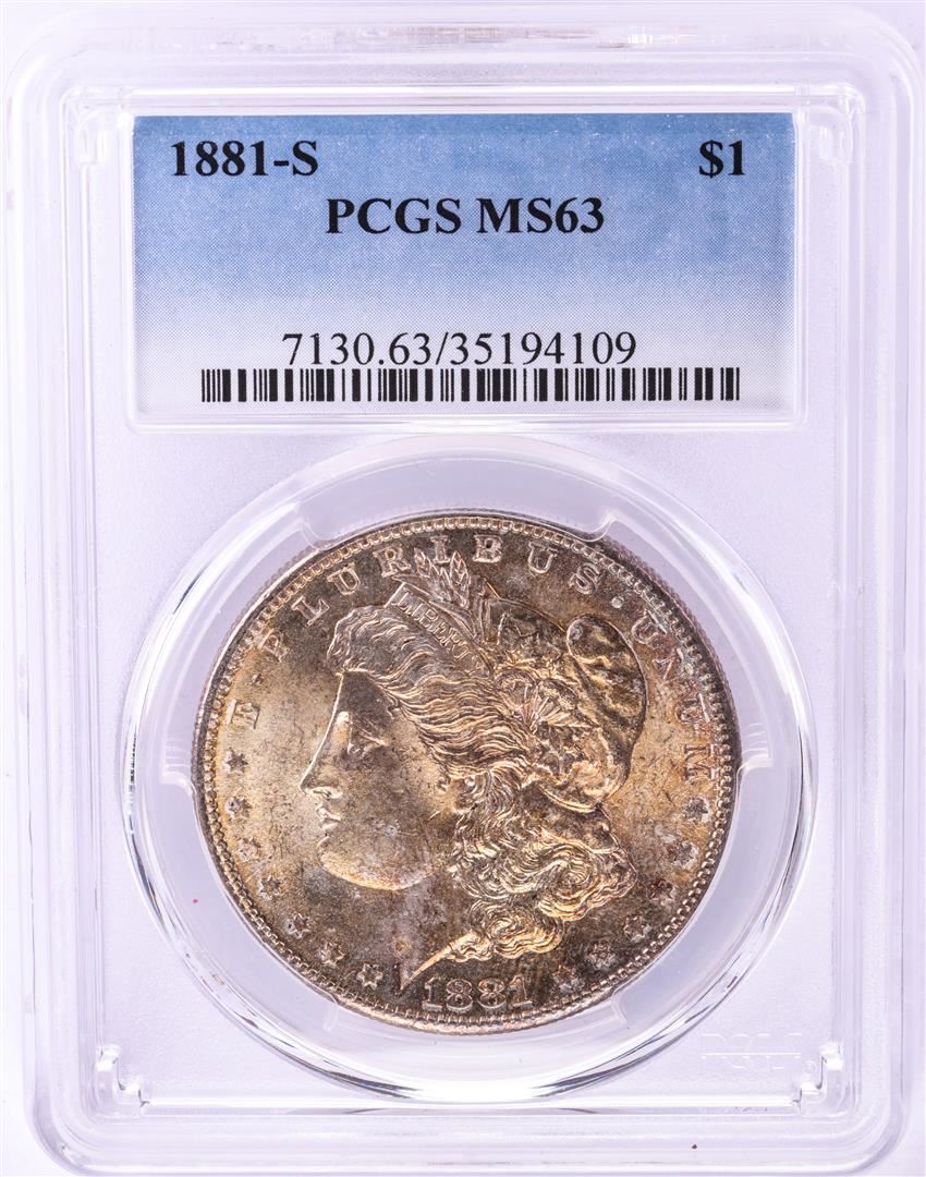 1881-S $1 Morgan Silver Dollar Coin PCGS MS63 Nice Toning