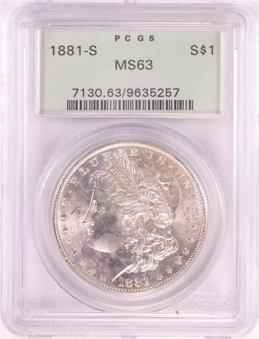 One 1881-S $1 Morgan Silver Dollar Coin PCGS MS63 Old Green Holder. PCGS Graded.