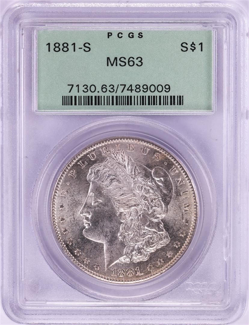 1881-S $1 Morgan Silver Dollar Coin PCGS MS63 Old Green Holder