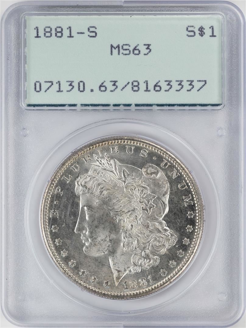 1881-S $1 Morgan Silver Dollar Coin PCGS MS63 Old Green Rattler