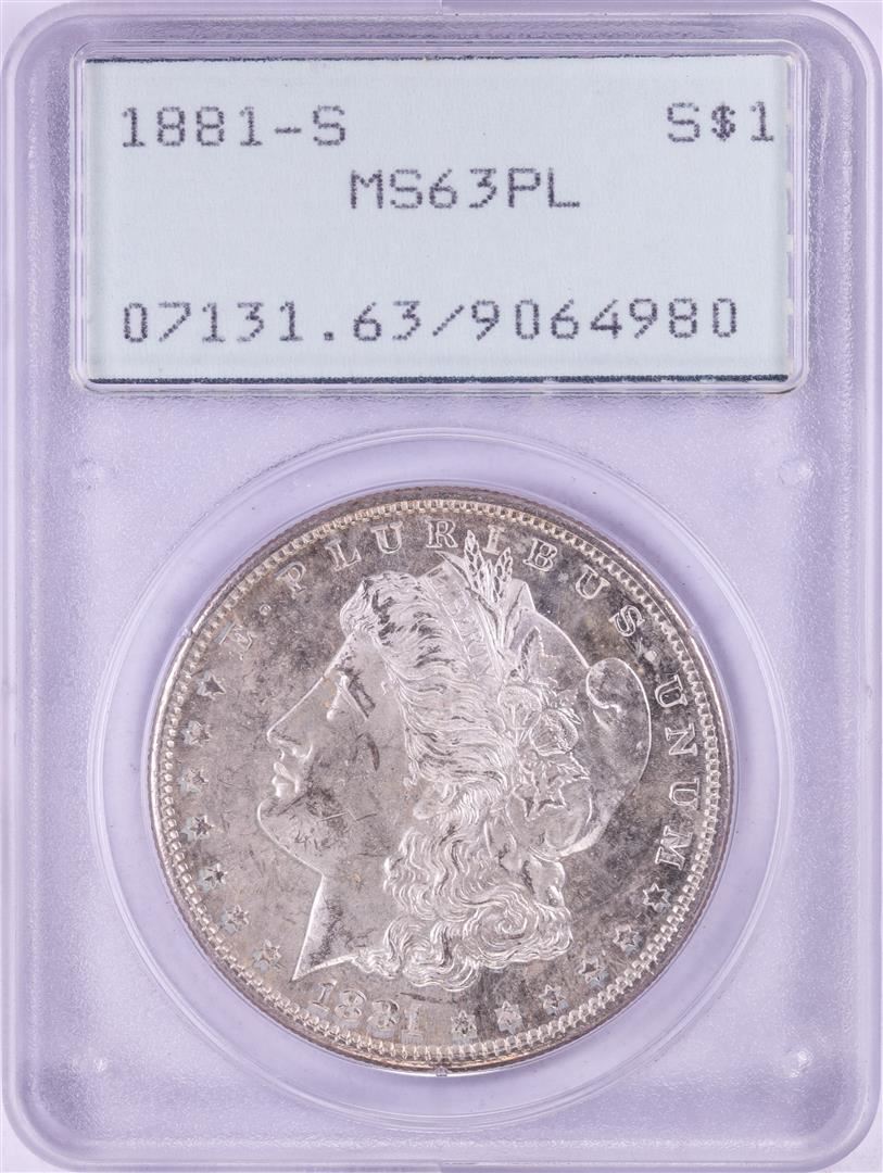 1881-S $1 Morgan Silver Dollar Coin PCGS MS63PL Green Rattler Holder