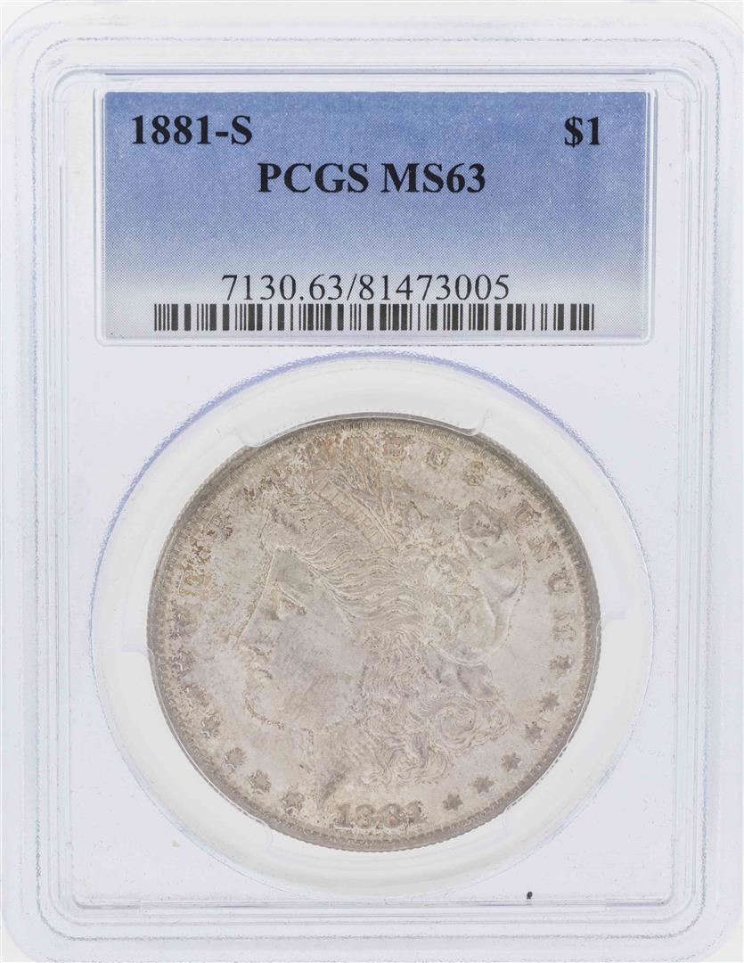 One 1881-S $1 Morgan Silver Dollar Coin PCGS MS63. PCGS Graded.