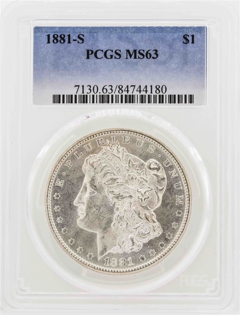 One 1881-S $1 Morgan Silver Dollar Coin PCGS MS63. PCGS Graded.