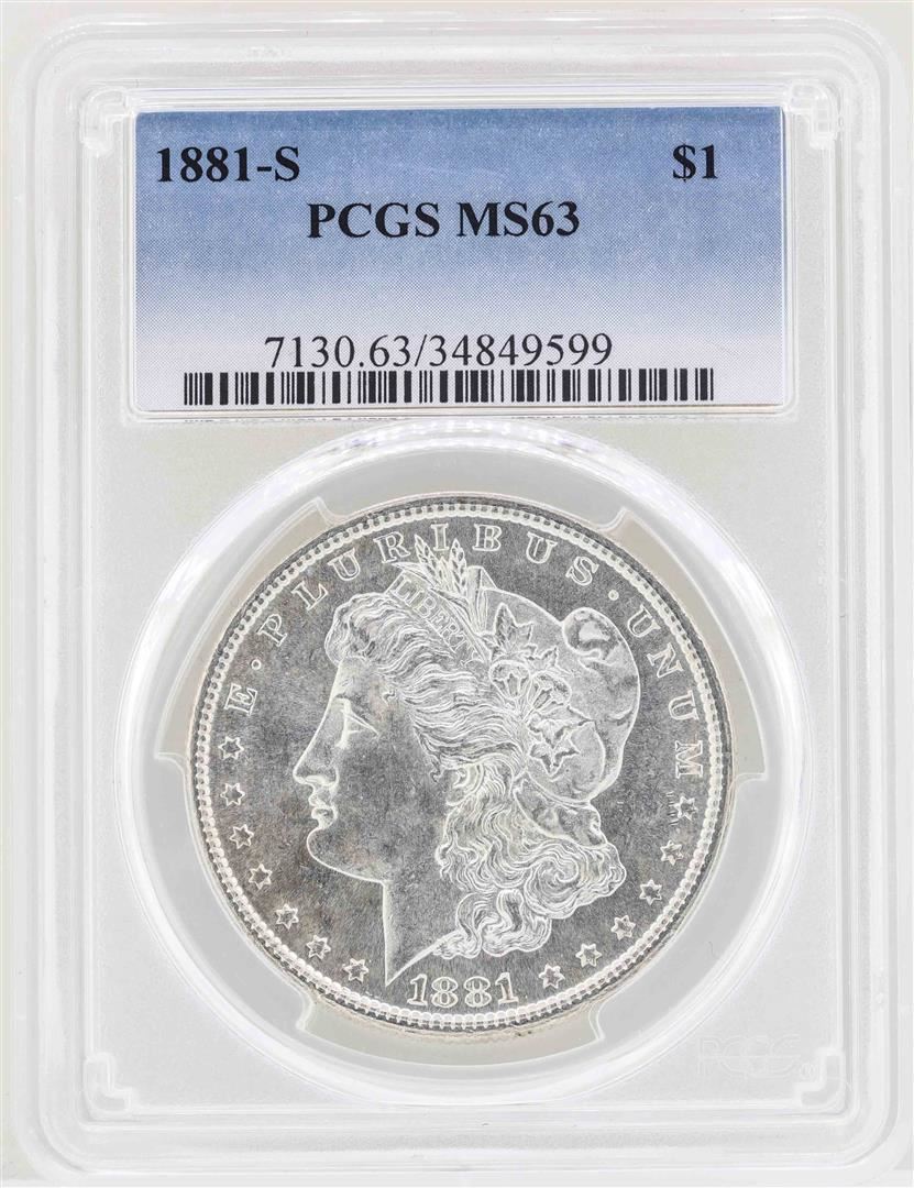 One 1881-S $1 Morgan Silver Dollar Coin PCGS MS63. PCGS Graded.