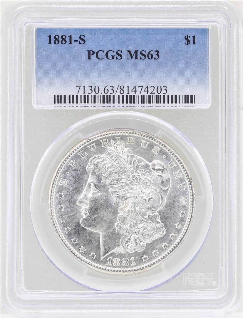One 1881-S $1 Morgan Silver Dollar Coin PCGS MS63. PCGS Graded.