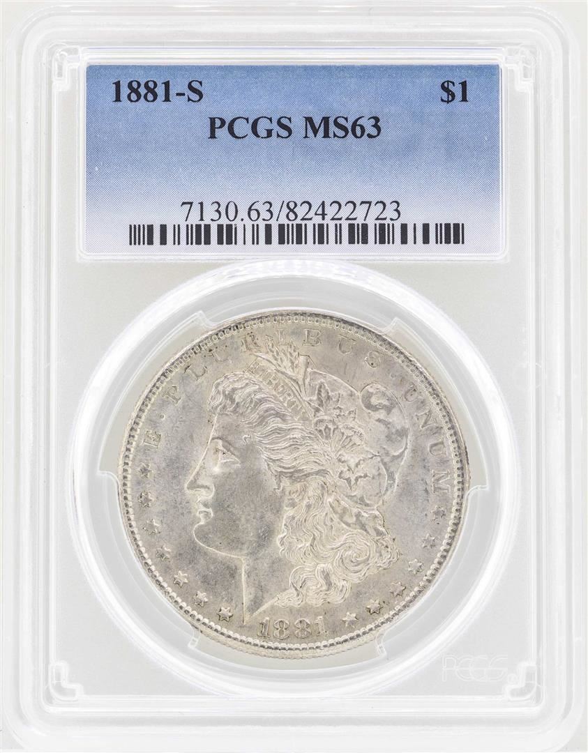 One 1881-S $1 Morgan Silver Dollar Coin PCGS MS63. PCGS Graded.