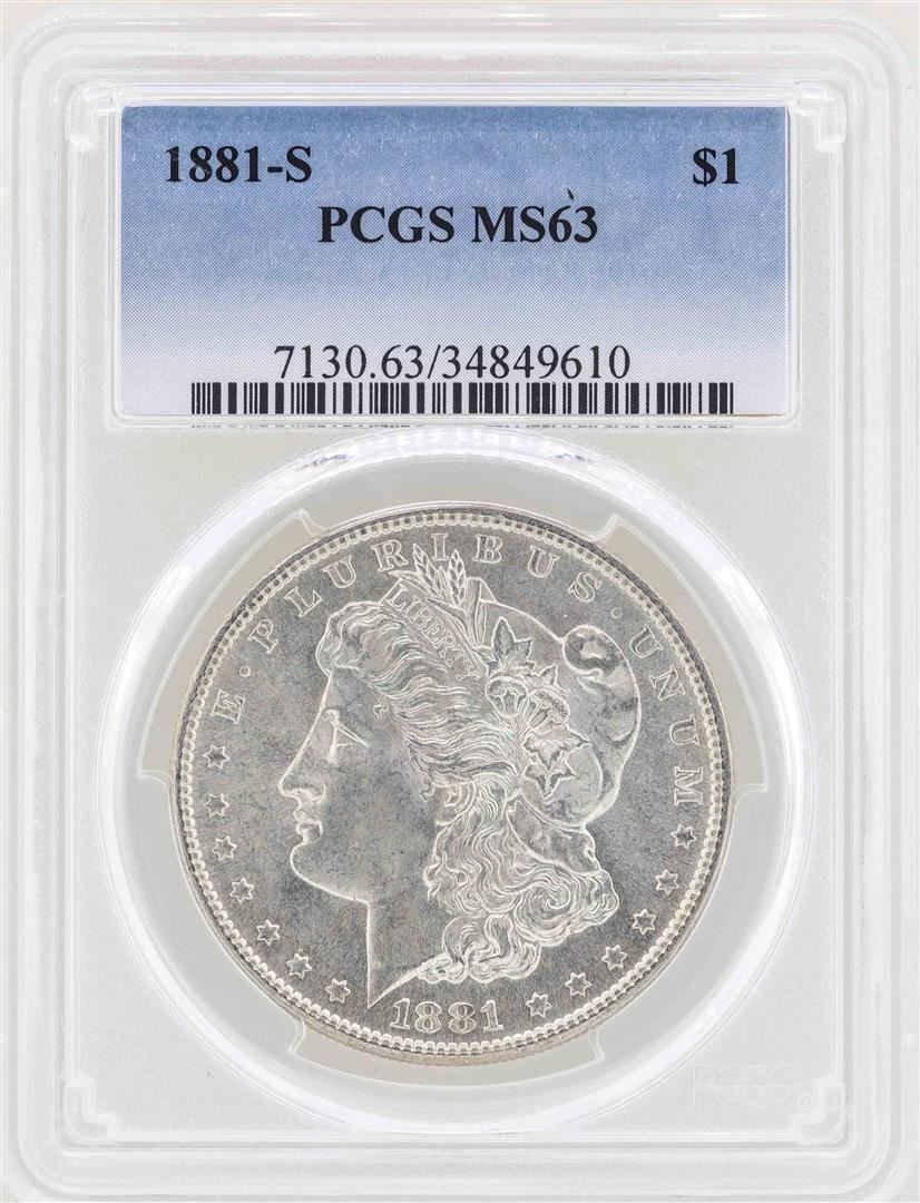 One 1881-S $1 Morgan Silver Dollar Coin PCGS MS63. PCGS Graded.