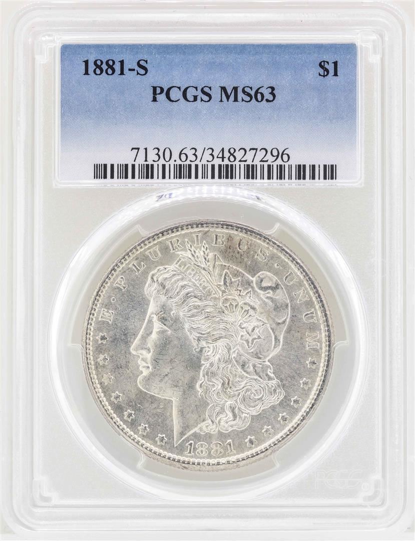 One 1881-S $1 Morgan Silver Dollar Coin PCGS MS63. PCGS Graded.