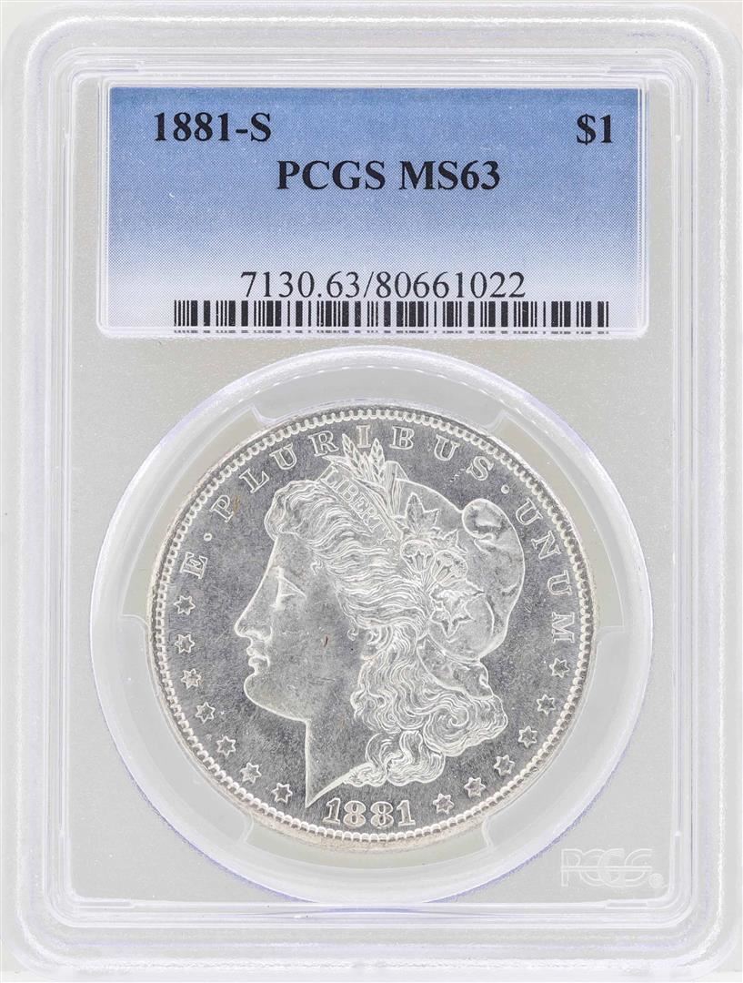 One 1881-S $1 Morgan Silver Dollar Coin PCGS MS63. PCGS Graded.