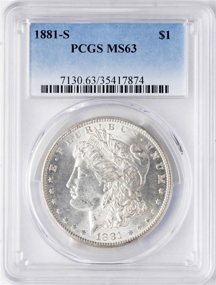 One 1881-S $1 Morgan Silver Dollar Coin PCGS MS63. PCGS Graded.