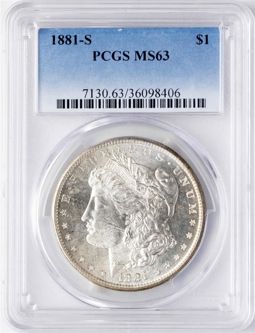 One 1881-S $1 Morgan Silver Dollar Coin PCGS MS63. PCGS Graded.