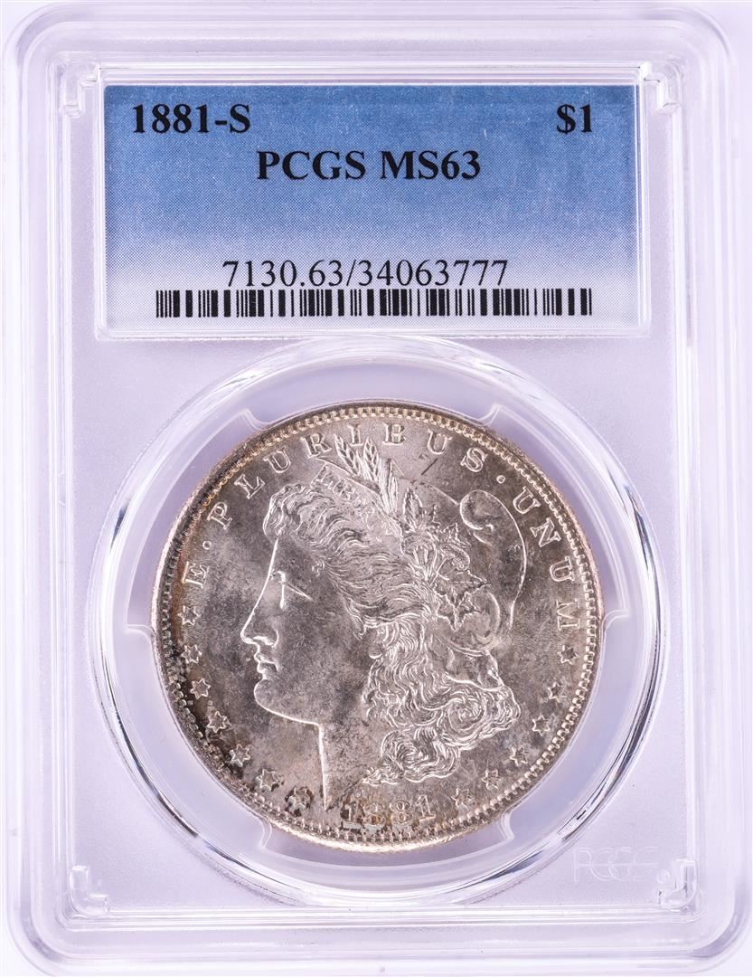 One 1881-S $1 Morgan Silver Dollar Coin PCGS MS63. PCGS Graded.