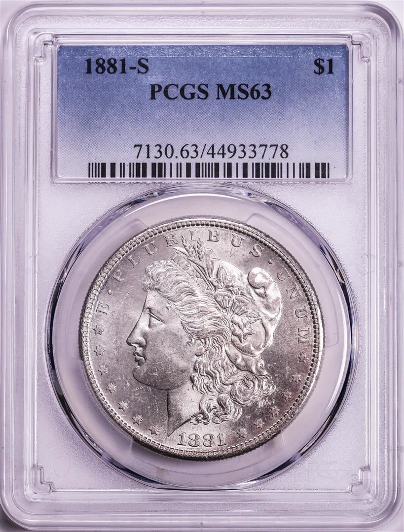 One 1881-S $1 Morgan Silver Dollar Coin PCGS MS63. PCGS Graded.