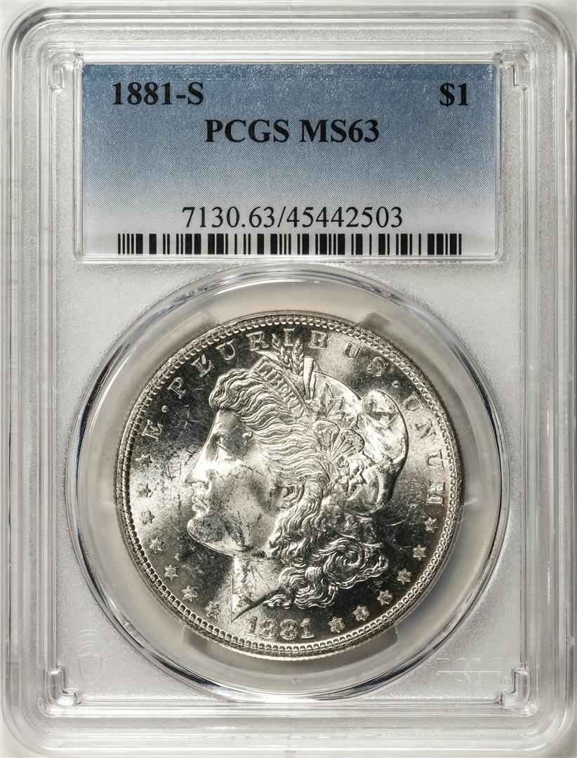 One 1881-S $1 Morgan Silver Dollar Coin PCGS MS63. PCGS Graded.