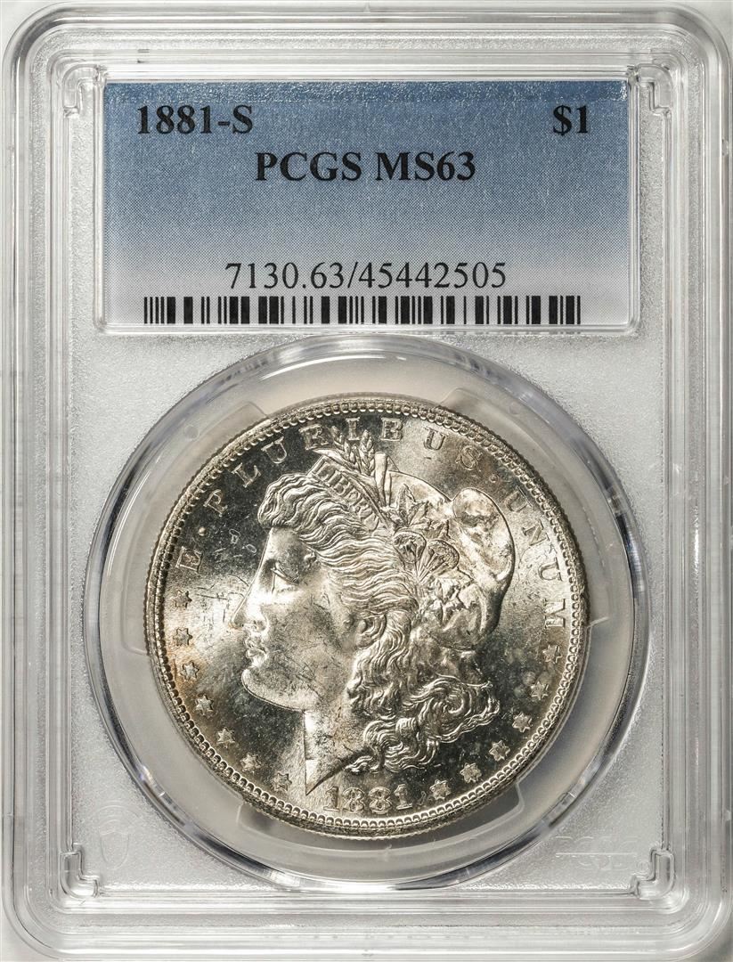 One 1881-S $1 Morgan Silver Dollar Coin PCGS MS63. PCGS Graded.