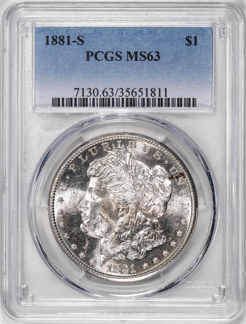 One 1881-S $1 Morgan Silver Dollar Coin PCGS MS63. PCGS Graded.