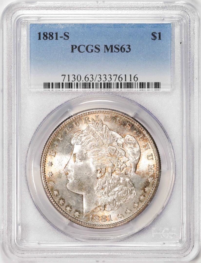 One 1881-S $1 Morgan Silver Dollar Coin PCGS MS63. PCGS Graded.