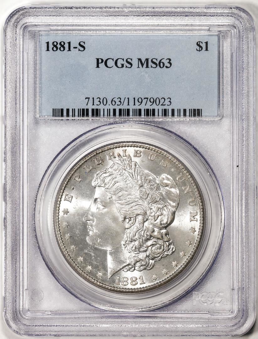 One 1881-S $1 Morgan Silver Dollar Coin PCGS MS63. PCGS Graded.