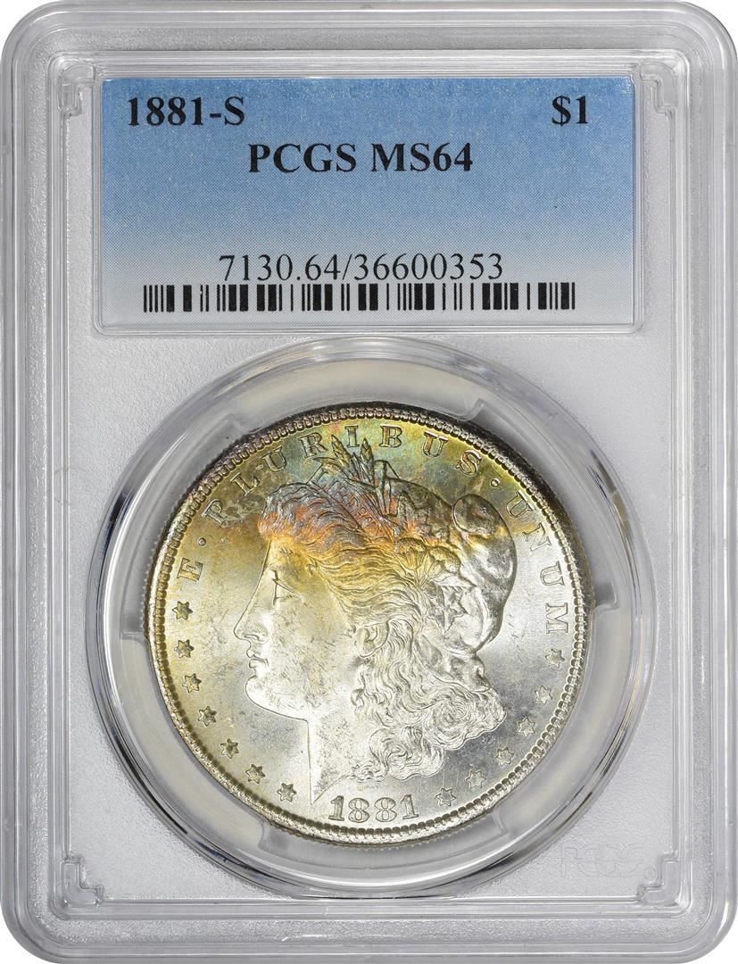 1881-S $1 Morgan Silver Dollar Coin PCGS MS64 Amazing Toning