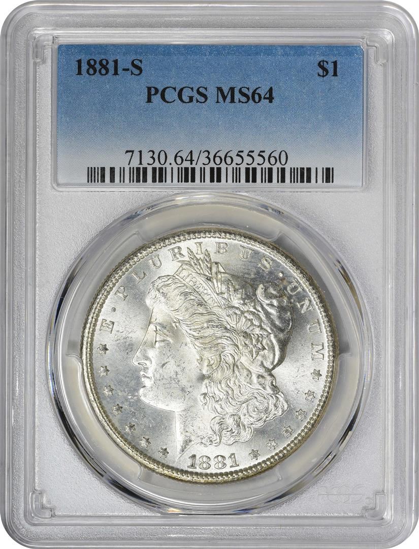 One 1881-S $1 Morgan Silver Dollar Coin PCGS MS64 Amazing Toning.