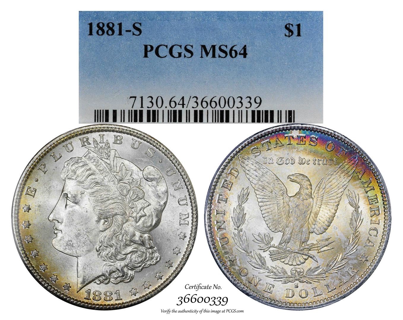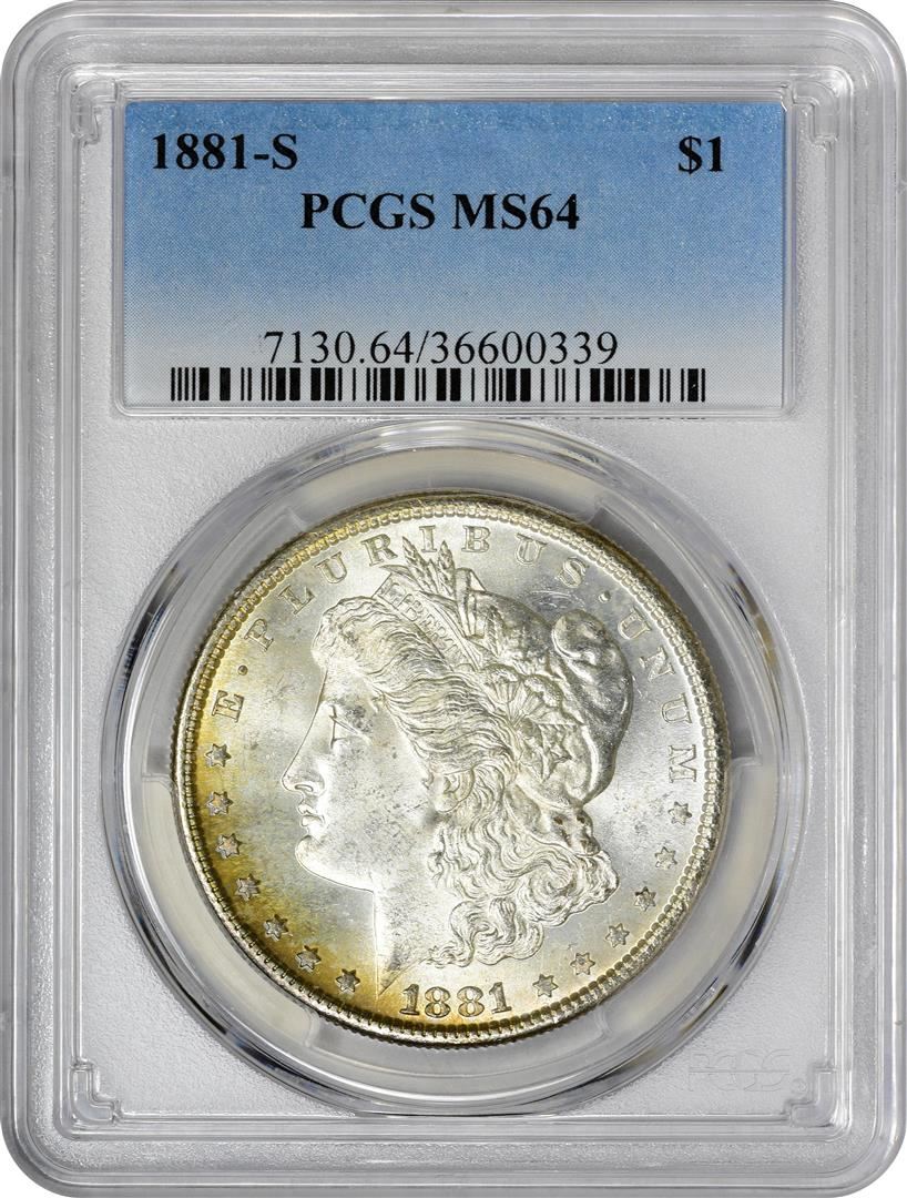1881-S $1 Morgan Silver Dollar Coin PCGS MS64 Amazing Toning