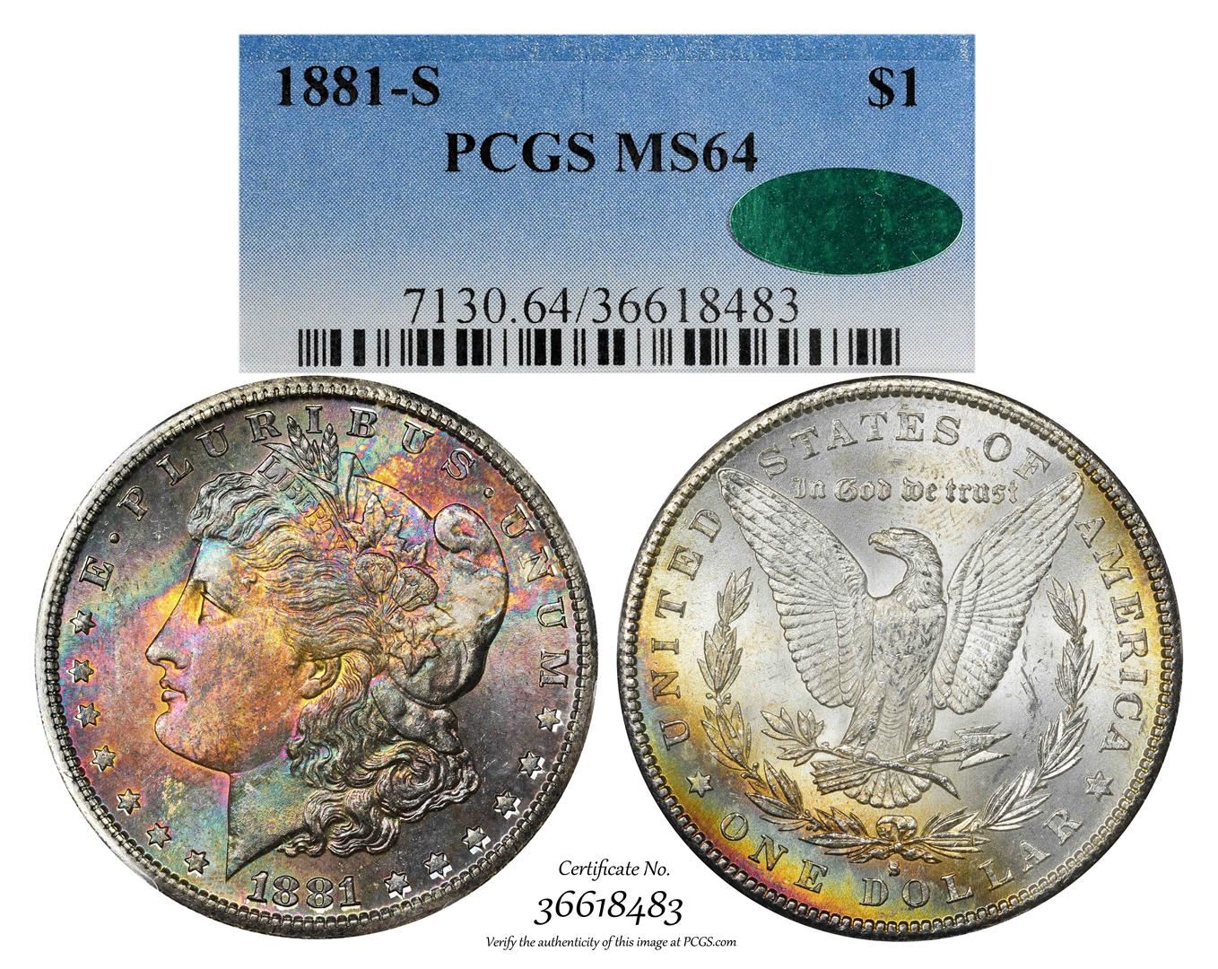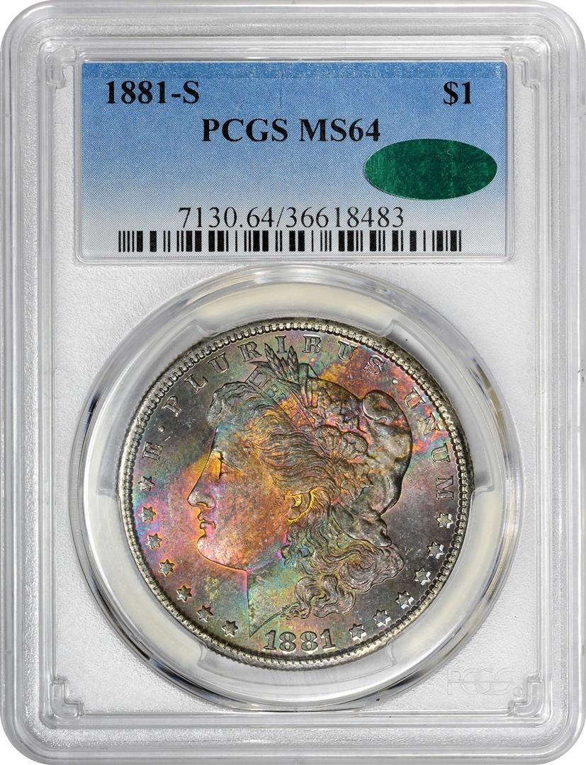 1881-S $1 Morgan Silver Dollar Coin PCGS MS64 CAC Amazing Toning