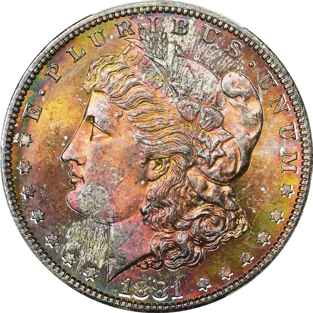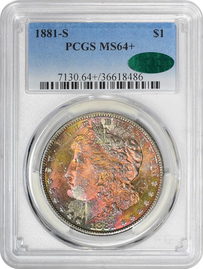1881-S $1 Morgan Silver Dollar Coin PCGS MS64+ CAC Amazing Toning