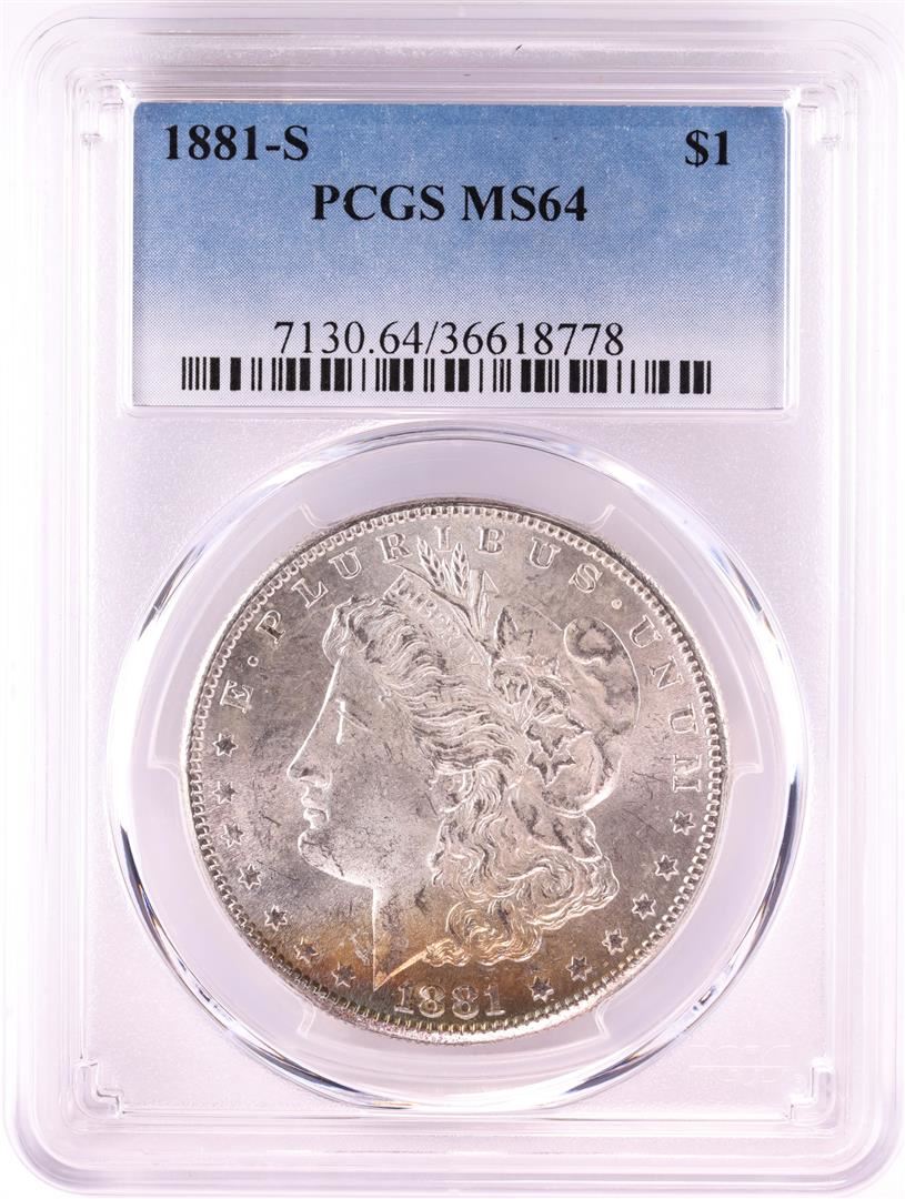 1881-S $1 Morgan Silver Dollar Coin PCGS MS64 Nice Toning
