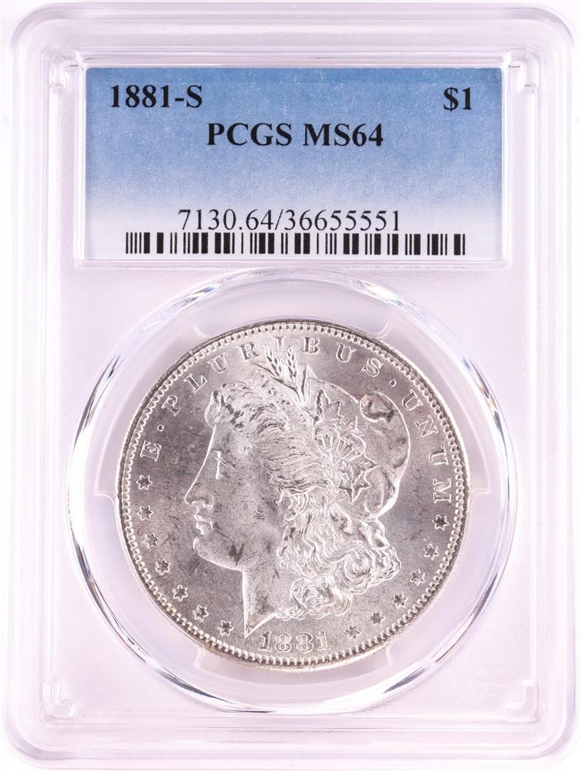 1881-S $1 Morgan Silver Dollar Coin PCGS MS64 Nice Toning