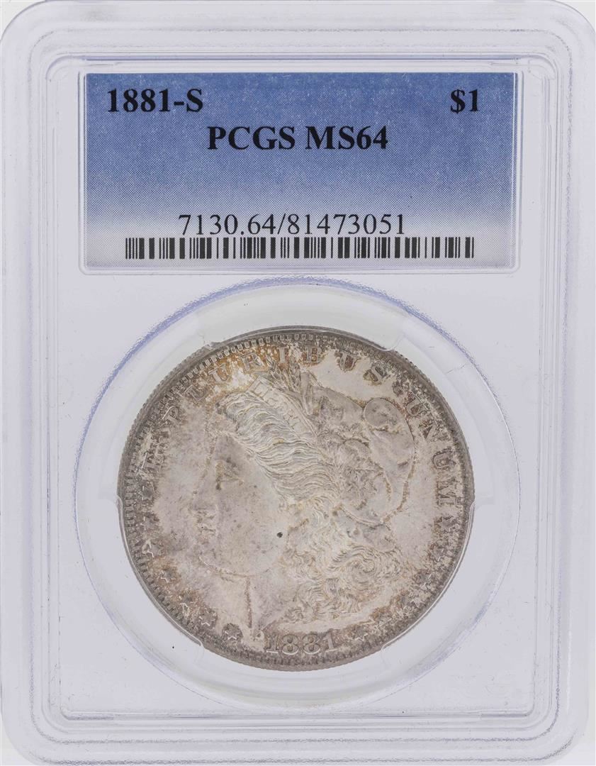 One 1881-S $1 Morgan Silver Dollar Coin PCGS MS64. PCGS Graded.