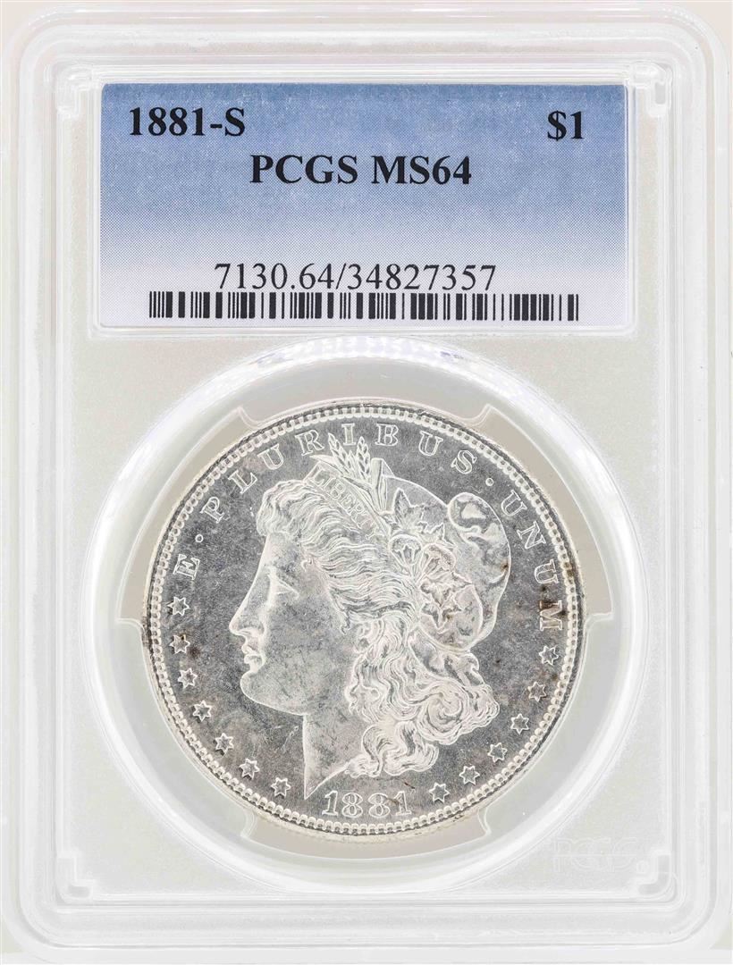 One 1881-S $1 Morgan Silver Dollar Coin PCGS MS64. PCGS Graded.