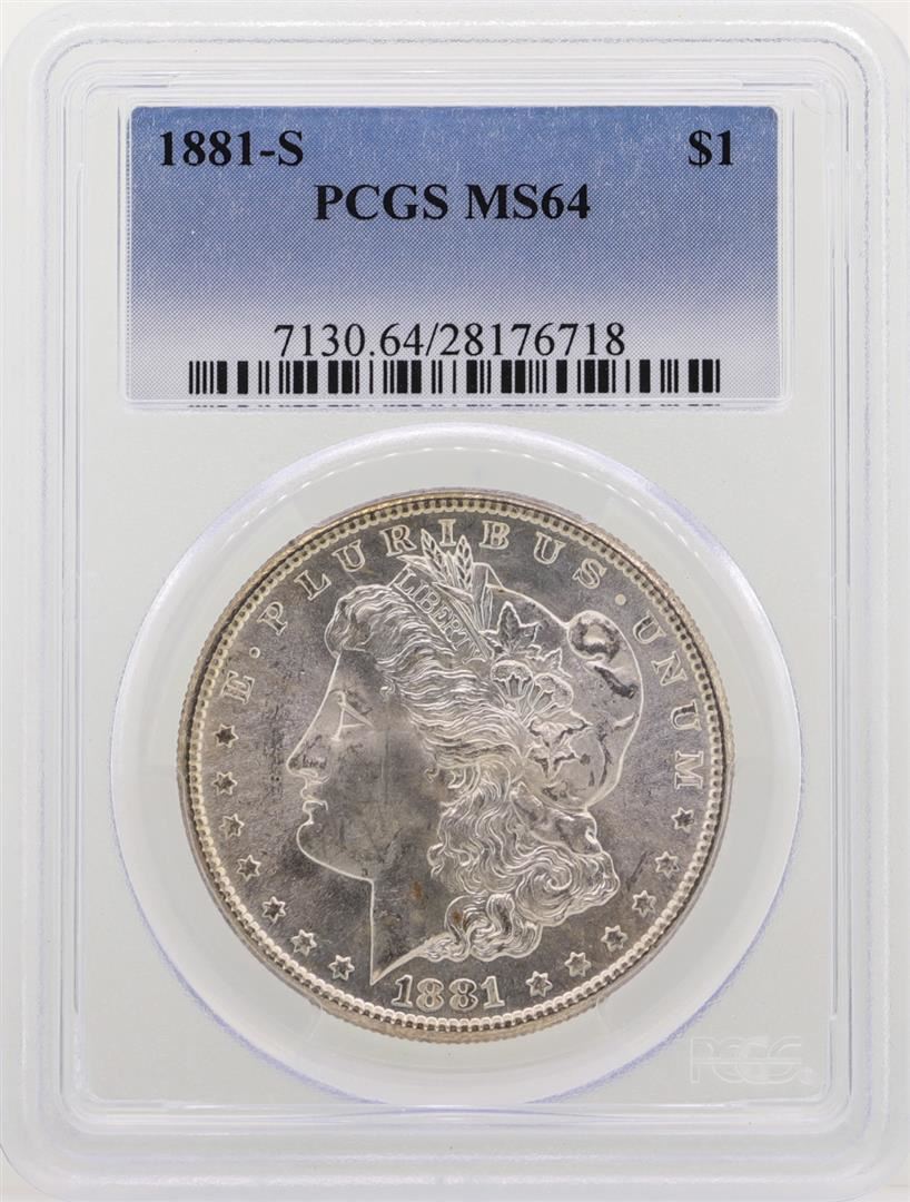 One 1881-S $1 Morgan Silver Dollar Coin PCGS MS64. PCGS Graded.