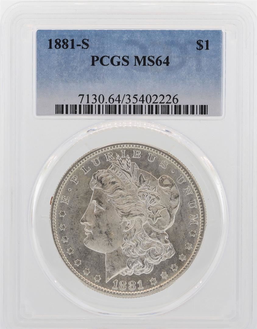One 1881-S $1 Morgan Silver Dollar Coin PCGS MS64. PCGS Graded.