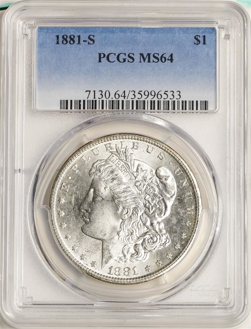 One 1881-S $1 Morgan Silver Dollar Coin PCGS MS64. PCGS Graded.