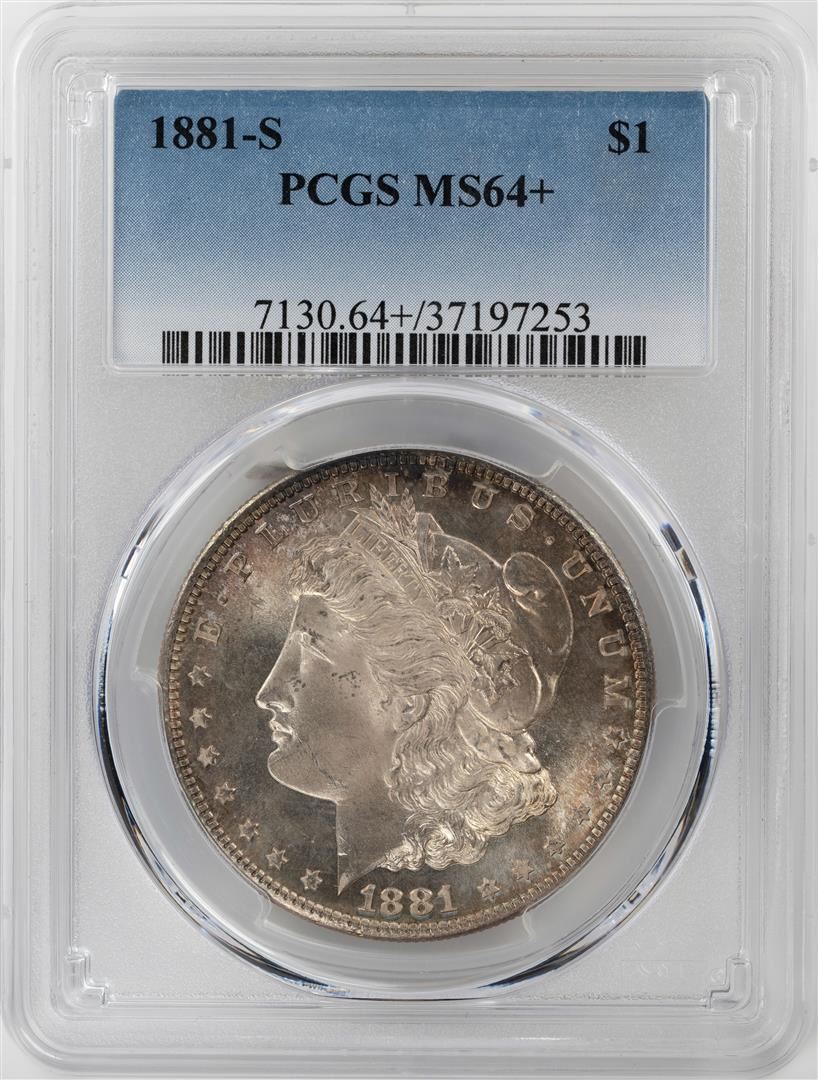 One 1881-S $1 Morgan Silver Dollar Coin PCGS MS64+. PCGS Graded.