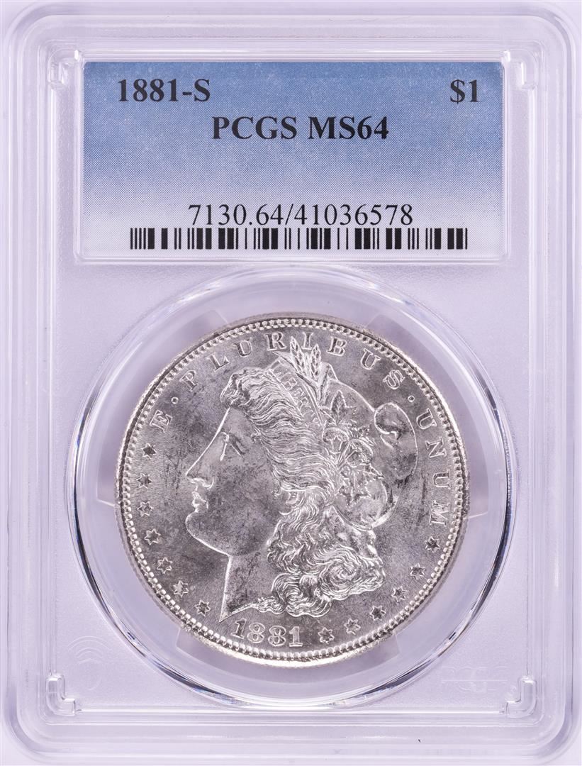 One 1881-S $1 Morgan Silver Dollar Coin PCGS MS64. PCGS Graded.