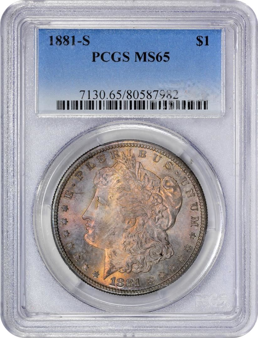 1881-S $1 Morgan Silver Dollar Coin PCGS MS65 Amazing Toning