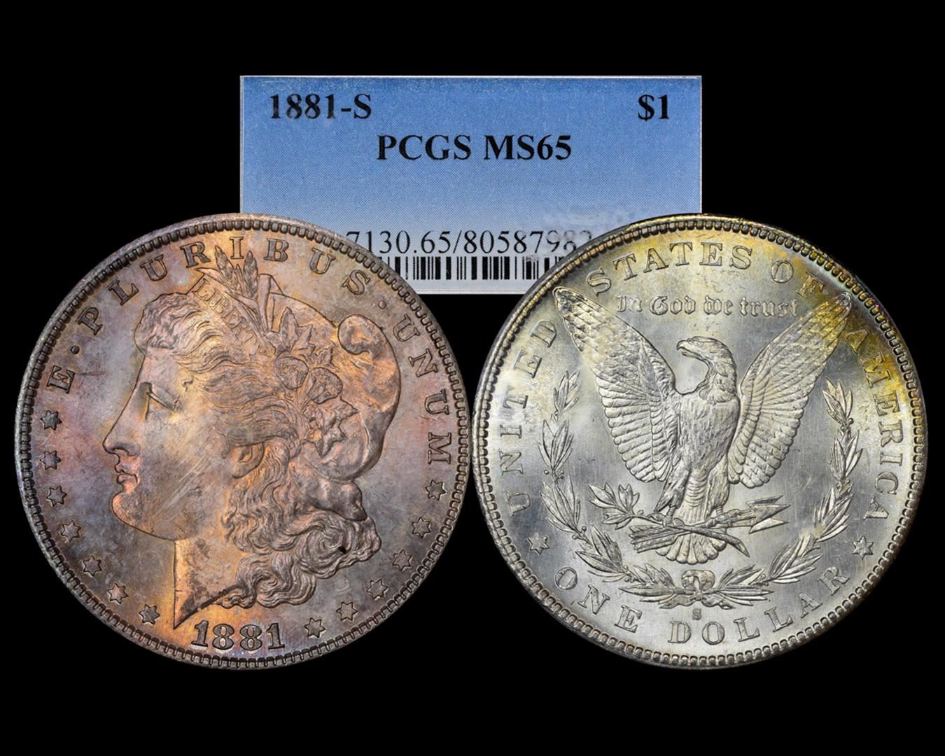 1881-S $1 Morgan Silver Dollar Coin PCGS MS65 Amazing Toning