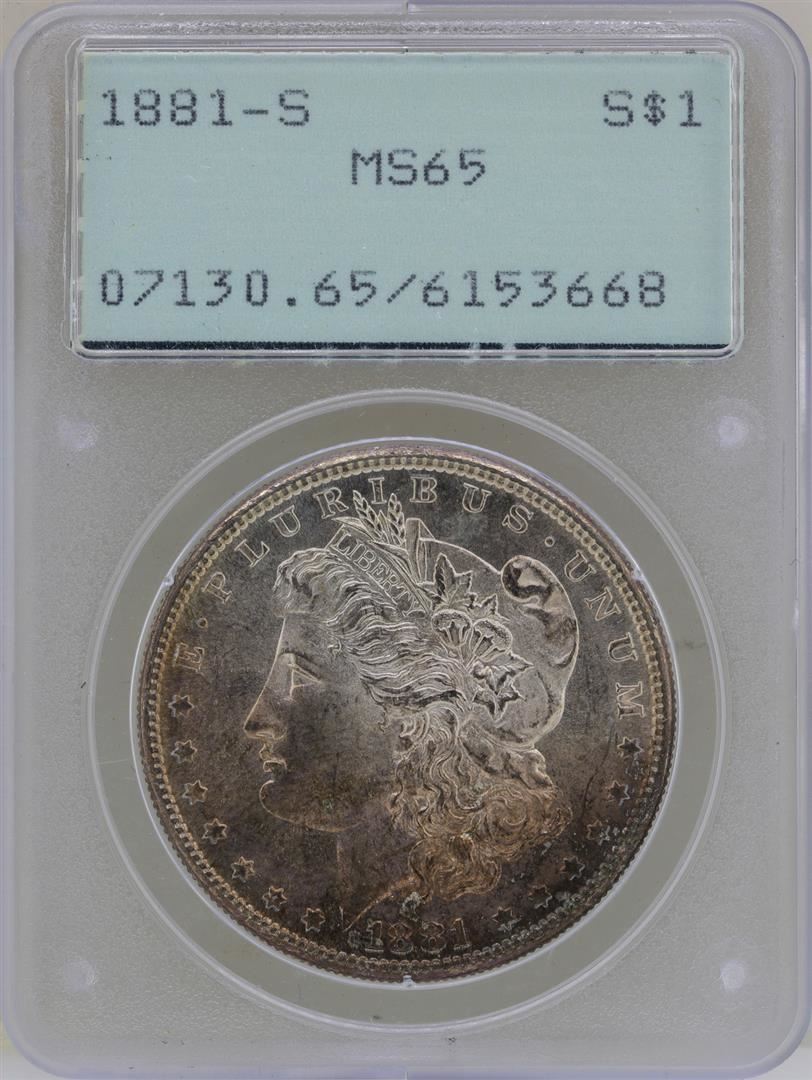 1881-S $1 Morgan Silver Dollar Coin PCGS MS65 Green Rattler Great Toning